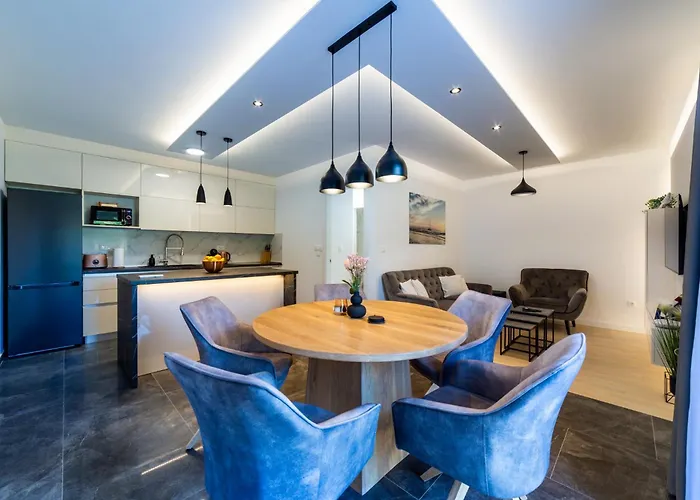 Luxury Apartment Riela Spalato, di 80 m², offre facile accesso a lughi turistici come il Supermercato Plodine, situato a soli 6 minuti a piedi. L'appartamento include una terrazza, dove gli ospiti possono godere di una vista sulla spiaggia sul mare.